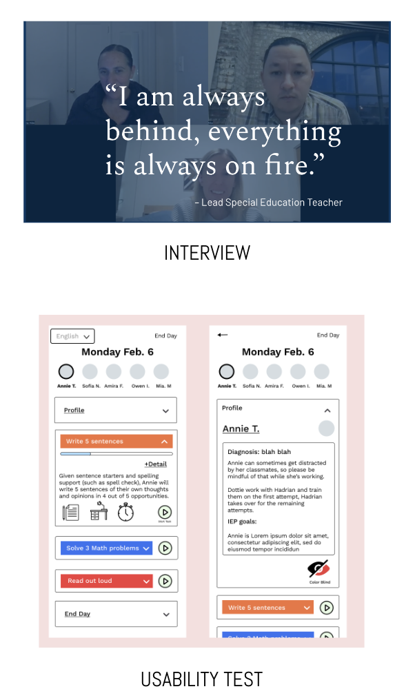 I developed a discussion guide and provided professional development to the team (many new to user research) to co-lead 8 usability interviews with teachers and their assistants.