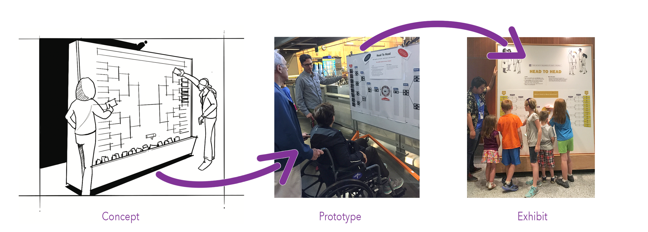 To quickly move from concept to prototype to finished exhibit, I conducted intercept interviews for 5 exhibits with over 50 participants. I produced high-level visual reports so that recommendations could be quickly incorporated into the next iteration of the instructional text and exhibit features.